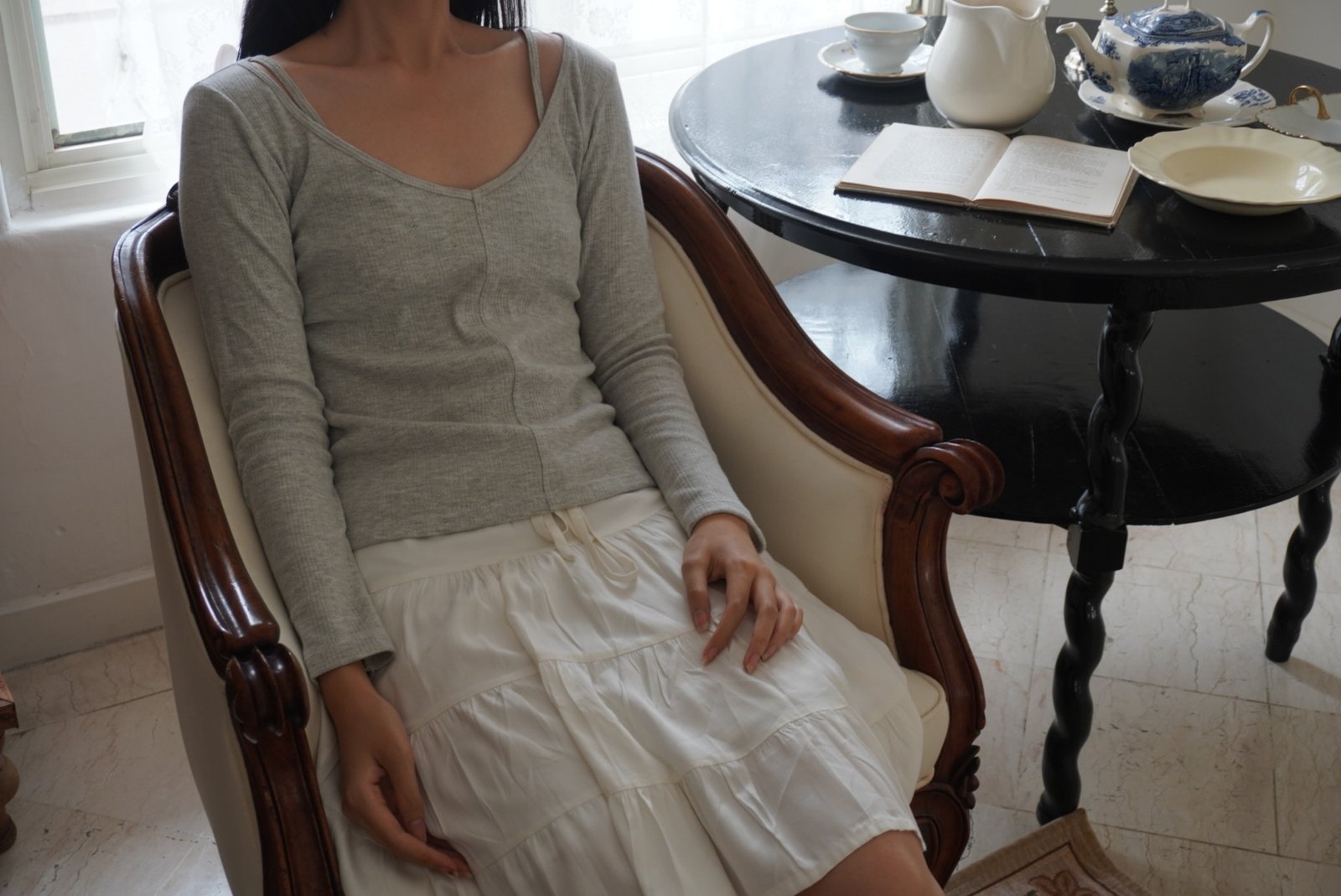 Simple and effortless, the Basset Skirt is a multi-tiered midi skirt with an elastic waistband and drawstring.