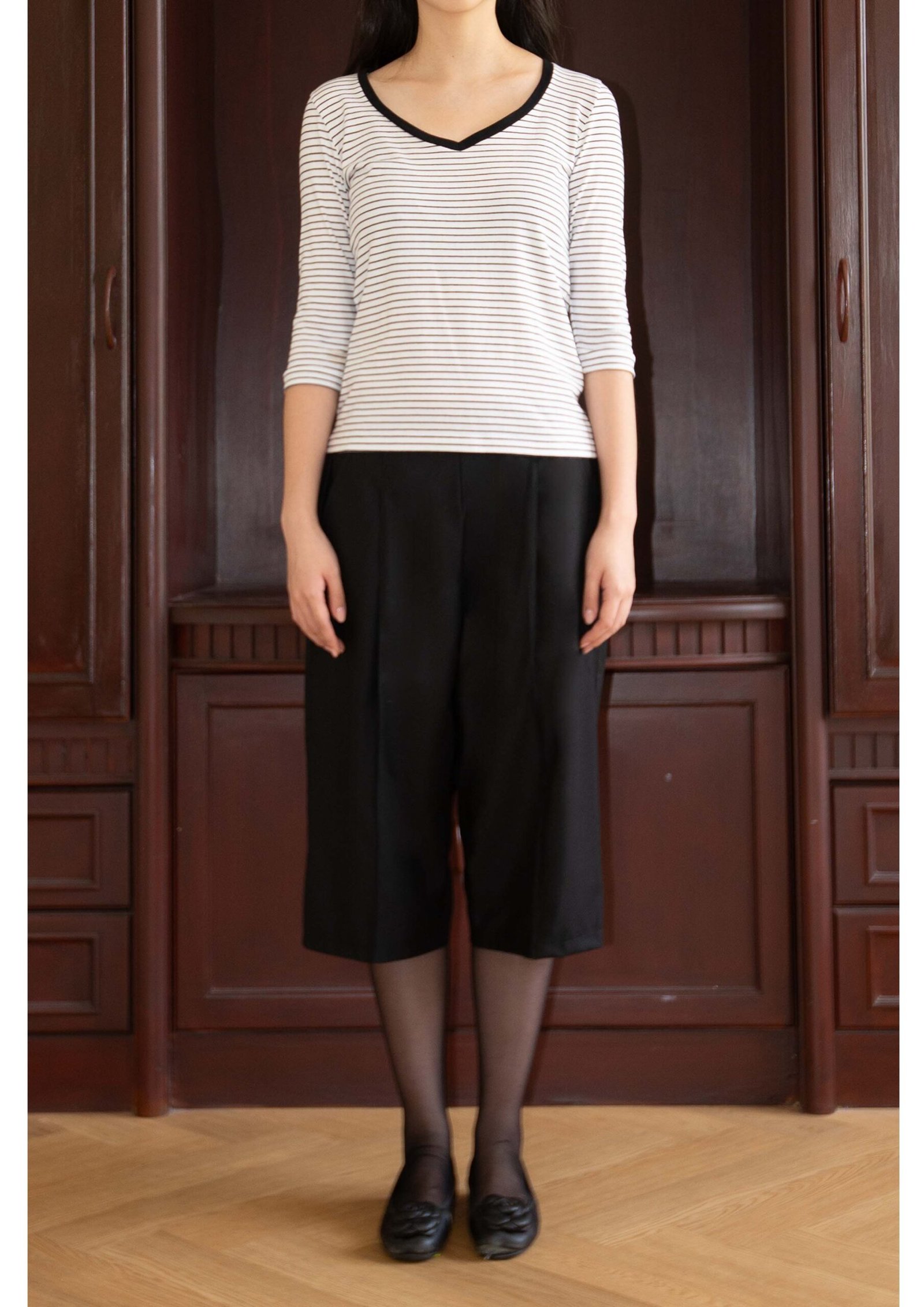 Versatile culottes for everyday use. Keith comes with a full elastic band at the back and decorative stitch lines running down its front panels.